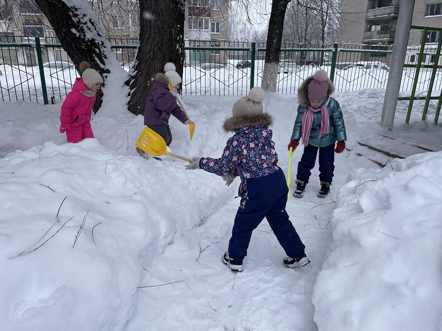 Пока зима радует нас пушистым снегом, наши воспитанники не сидят без дела. На прогулке они превращаются в ответственных хозяев своего игрового участка. Ребята с азартом расчищают снег, чтобы было удобнее и безопаснее играть. Для них это не обязанность, а увлекательная игра и возможность почувствовать себя взрослыми и полезными.