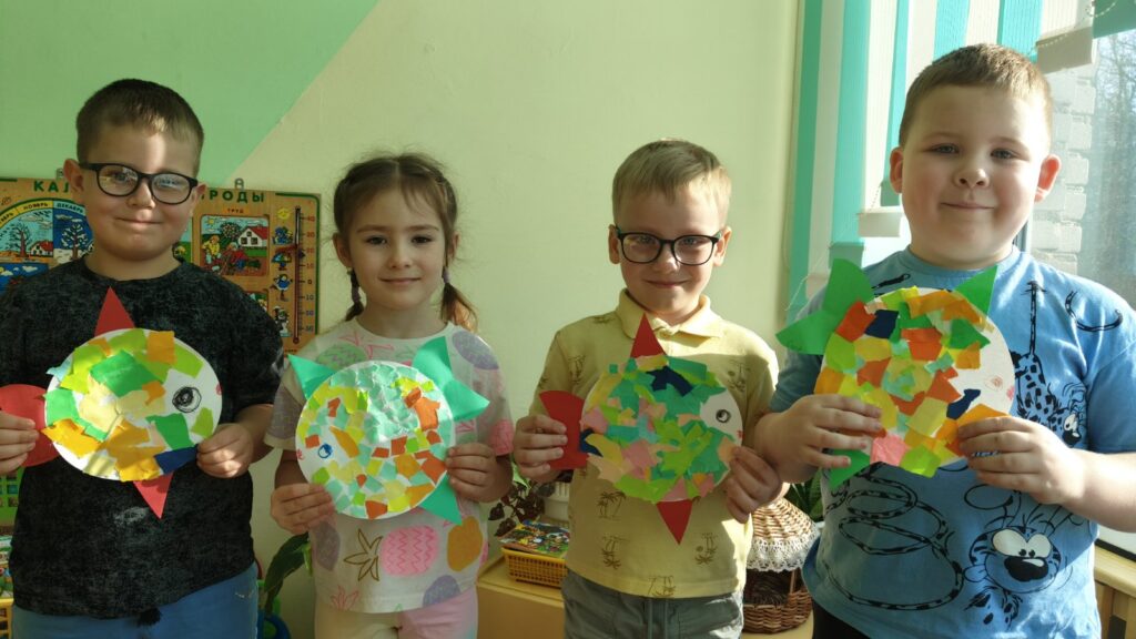 На занятиях по изобразительному искусству дети лепили и рисовали на тему «Подводный мир». Путем аппликативной деятельности у ребят получилась удивительная рыба-шар.